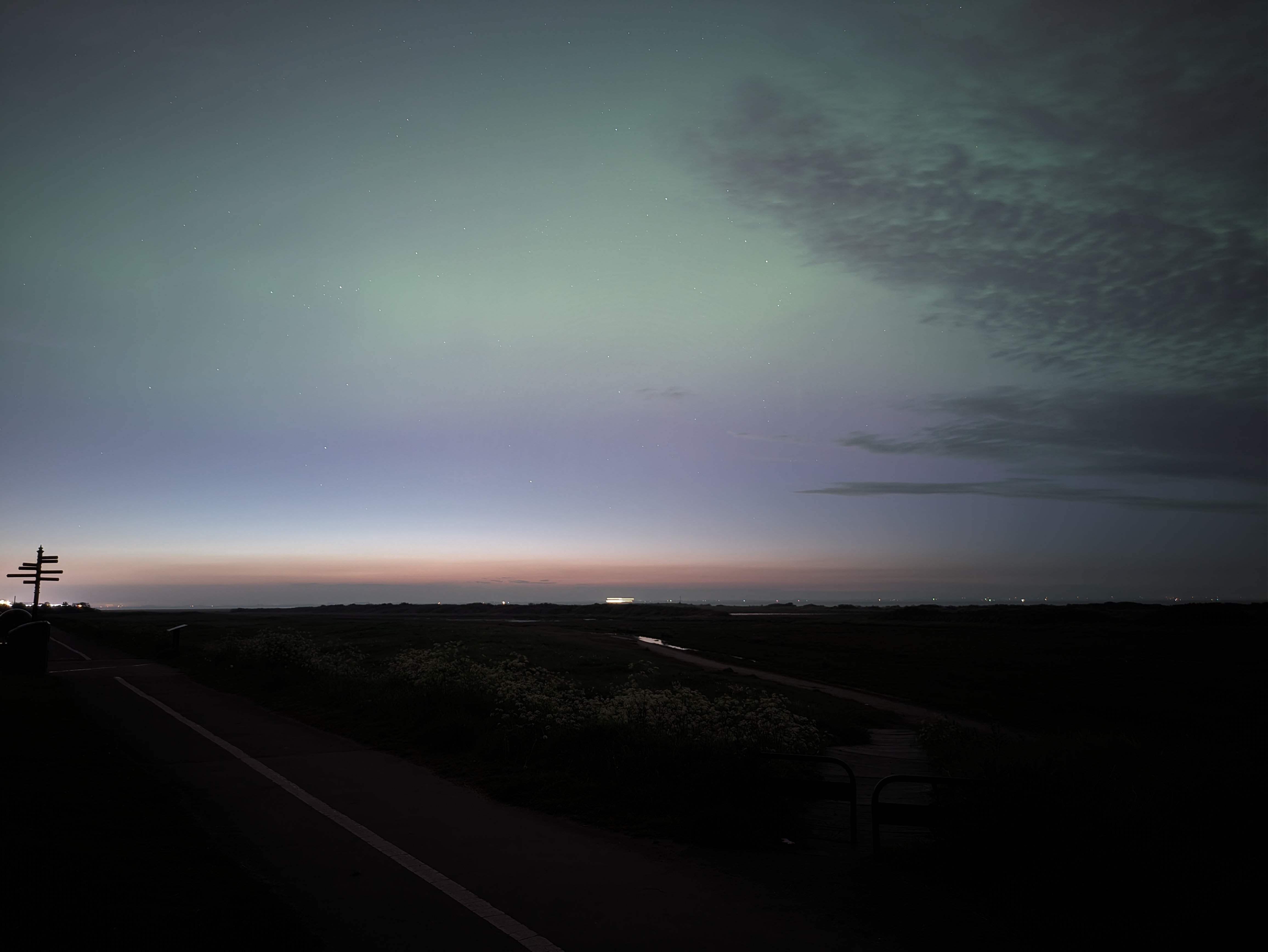 Then one night in April 2023, the phone started pinging relentlessly around 10pm – incoming Aurora alerts galore. As I often do, I fell to sleep on the settee and was awoken around 1:45am by a flurry of notifications. This was not a drill. I peered outside and saw a wall of cloud. Thinking better of standing on a cold, dark seafront in the middle of the night with little chance of seeing what I actually wanted to see, I headed up to bed and returned to my slumber – big mistake!